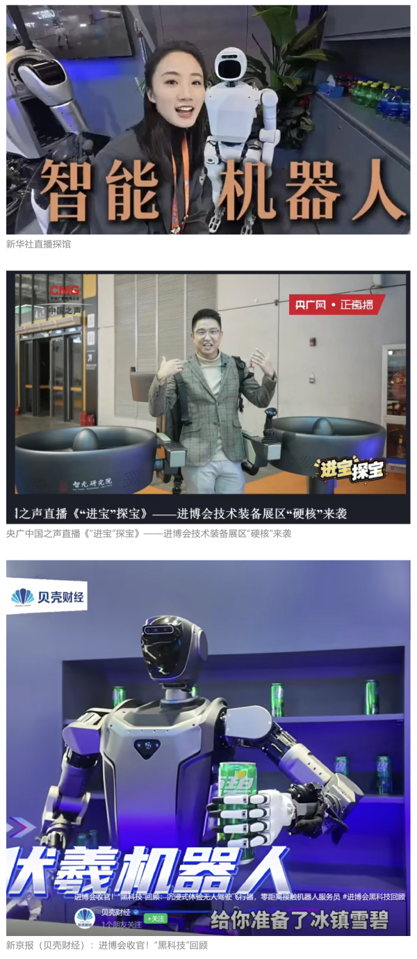 11月5日至10日,中國兵器工業(yè)集團有限公司組團參加第八屆中國國際進口博覽會。集團公司以“堅持合作共贏,推進高水平對外開放,助力構(gòu)建新發(fā)展格局”為目標,圍繞“新征程,共創(chuàng)未來”主題組團參展,集中展示了一系列新技術(shù)、新理念、新成果,取得豐碩成果,受到廣泛關(guān)注。 嘉賓云集 本屆進博會上,蒙古國駐華大使、贊比亞礦業(yè)和礦產(chǎn)開發(fā)部常任秘書、津巴布韋首席司長等多國政要蒞臨集團公司組展展區(qū),了解有關(guān)項目情況。 國家能源集團、東風汽車、哈電集團、鞍鋼集團、中鋁集團、通用技術(shù)集團、中國中車、中國長安汽車、中國電建等央企領(lǐng)導,工信部、國務院國資委、中國貿(mào)促會、陜西省、上海市、浙江省等國內(nèi)政府部門領(lǐng)導以及國內(nèi)外合作伙伴蒞臨集團公司組展展區(qū)參觀指導。對集團公司高質(zhì)量共建“一帶一路”,與各國合作伙伴共享發(fā)展機遇、實現(xiàn)互利共贏給予高度評價。 媒體關(guān)注 集團公司集中簽約亮相央視綜合頻道《新聞聯(lián)播》、央視新聞頻道《朝聞天下》《新聞30分》《共同關(guān)注》、央視財經(jīng)頻道《正點財經(jīng)》《經(jīng)濟信息聯(lián)播》。 《環(huán)球時報》、環(huán)球網(wǎng)、《新京報》、《中國旅游報》等對集團公司人形機器人、四足機器人、涵道穿戴式載人飛行器、外骨骼等多型新域新質(zhì)產(chǎn)品,集中亮相進行報道。新華社、央廣中國之聲、新京報(貝殼財經(jīng))、上海廣播電視臺等媒體直播探館,打卡兵器“硬核科技”。 人民日報客戶端、新華社客戶端、人民網(wǎng)、中國網(wǎng)、中國日報網(wǎng)、國務院國資委網(wǎng)站、國資小新微信公眾號、國資小新Facebook、學習強國中央企業(yè)學習平臺、經(jīng)濟觀察網(wǎng)、新京報客戶端等第一時間刊發(fā)集團公司組展簽約、ESG建設(shè)等情況。新浪財經(jīng)、界面新聞等商業(yè)平臺閱讀量累計超500萬次。 在微博、抖音等新媒體平臺上,集團公司高科技產(chǎn)品演示、5D穹幕電影體驗等短視頻持續(xù)引爆流量,累計播放量超800萬次,點贊量破50萬。“兵器工業(yè)集團進博會簽約386億”相關(guān)話題登上微博熱搜榜,閱讀量破5000萬次。 文字丨劉暢 |