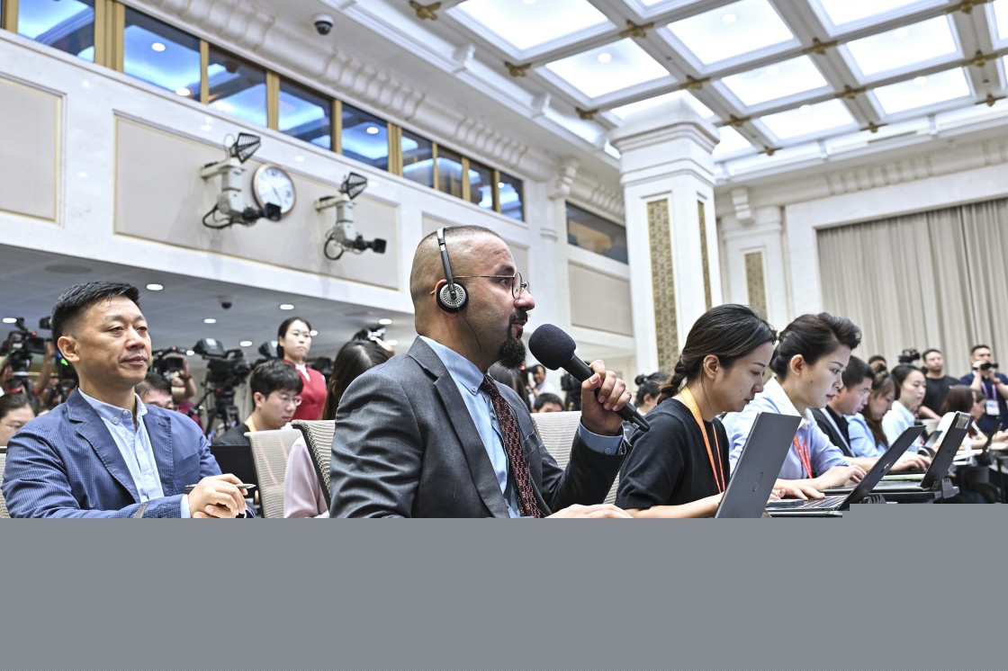 8月20日,國務院新聞辦公室在北京舉行新聞發(fā)布會,閱兵領導小組辦公室副主任、中央軍委聯(lián)合參謀部作戰(zhàn)局少將副局長吳澤棵,中國人民解放軍中部戰(zhàn)區(qū)閱兵指揮機構辦公室常務副主任、政治工作部少將副主任徐貴忠介紹閱兵準備工作有關情況,并答記者問。這是記者在現(xiàn)場提問。
